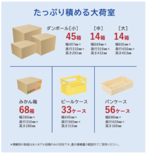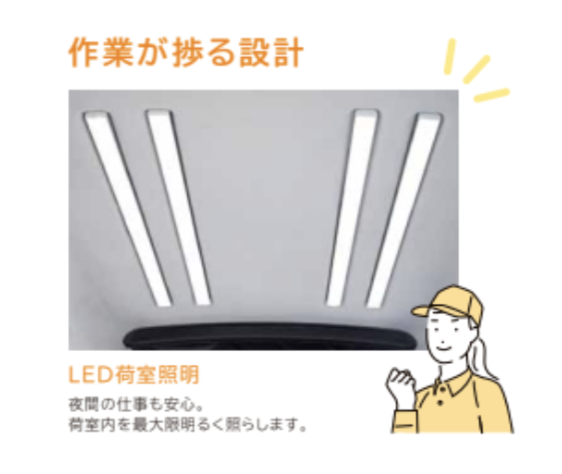 荷室を最大限明るく照らしてくれるから夜間の仕事も安心です。