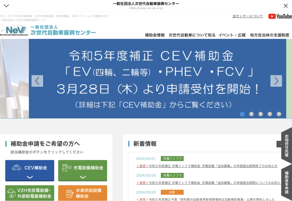 なお、CEV補助金の受付開始は【3月28日(木)】から始まってます